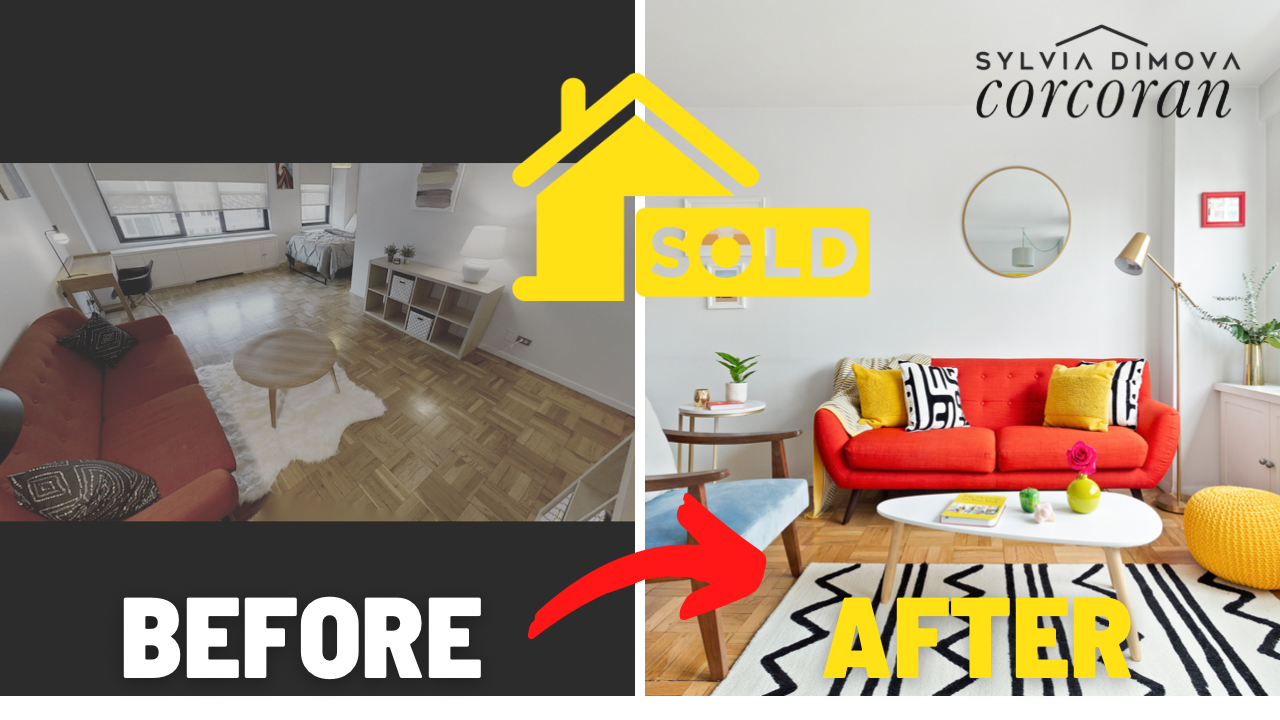 They say a picture is worth a thousand words. I couldn’t agree more. This is why I personally invest in making sure my client’s homes are picture-perfect when we take the professional photos. You only have one chance of making a first impression and I know that it directly correlates to the price you sell for. Take the photos below as an example – it’s the same apartment but the staged one POPS! And needless to sell I sold it quickly and profitably for my sellers. I can’t tell you how many times buyers who came to see the condo asked me if they could also purchase the staging furniture; that’s how great it looked. Last year I took over a listing in Kips Bay which had sat on the market for a whole year with another broker with no offers. I staged the unit, had it professionally cleaned and painted, and sold it within 2 months!
